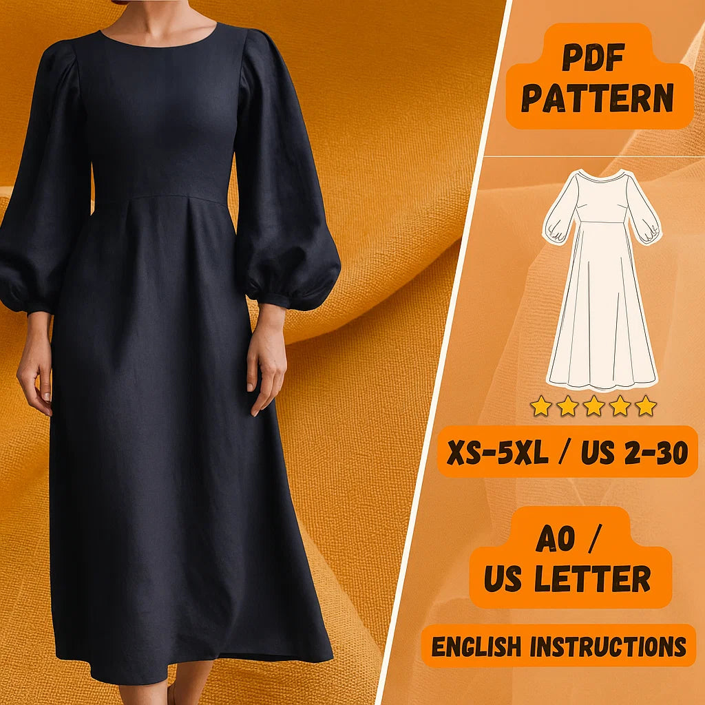 Bishop Sleeve Dress PDF Sewing Pattern