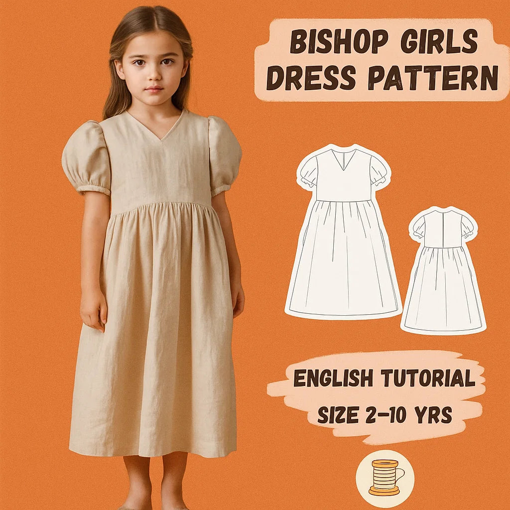 🌼 Let your little one shine in timeless charm with this Bishop Sleeve Girls Dress Sewing Pattern – a vintage-style linen dress designed for comfort, style, and twirls.