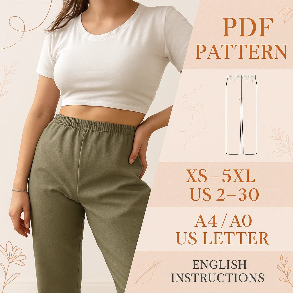 👖 Women’s Elastic Waist Pants – PDF Sewing Pattern (XS–5XL)
