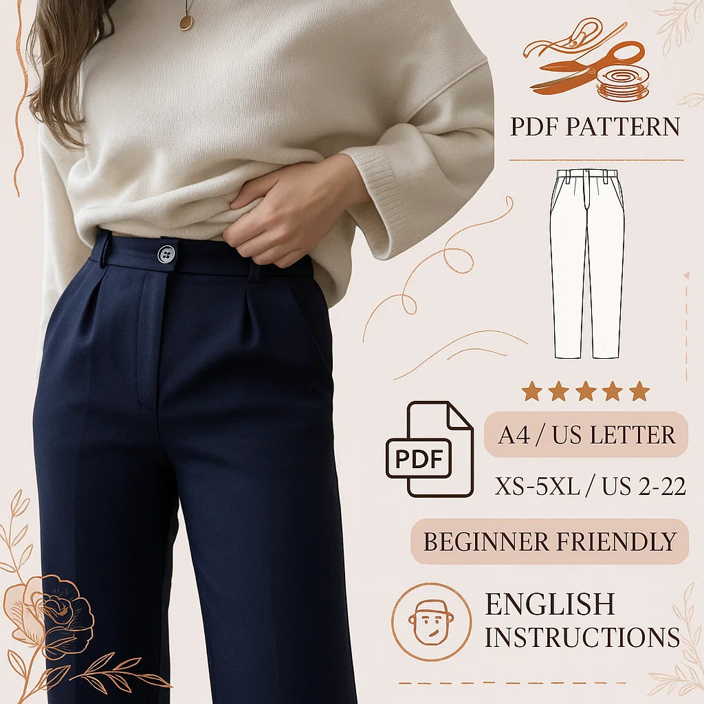🧡 Ideal for intermediate sewists who want to craft elegant, comfortable, and custom-fit trousers.