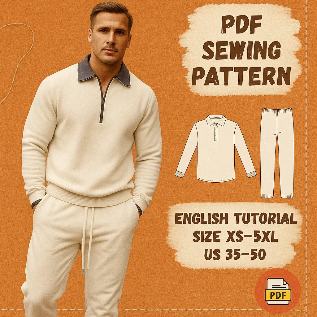 Stay cozy and stylish with this Men’s Casual Zip-Up Sweatshirt and Jogger Set Sewing Pattern. Designed for relaxed days, workouts, or everyday wear, this minimalist two-piece set brings comfort and clean lines to your handmade wardrobe.