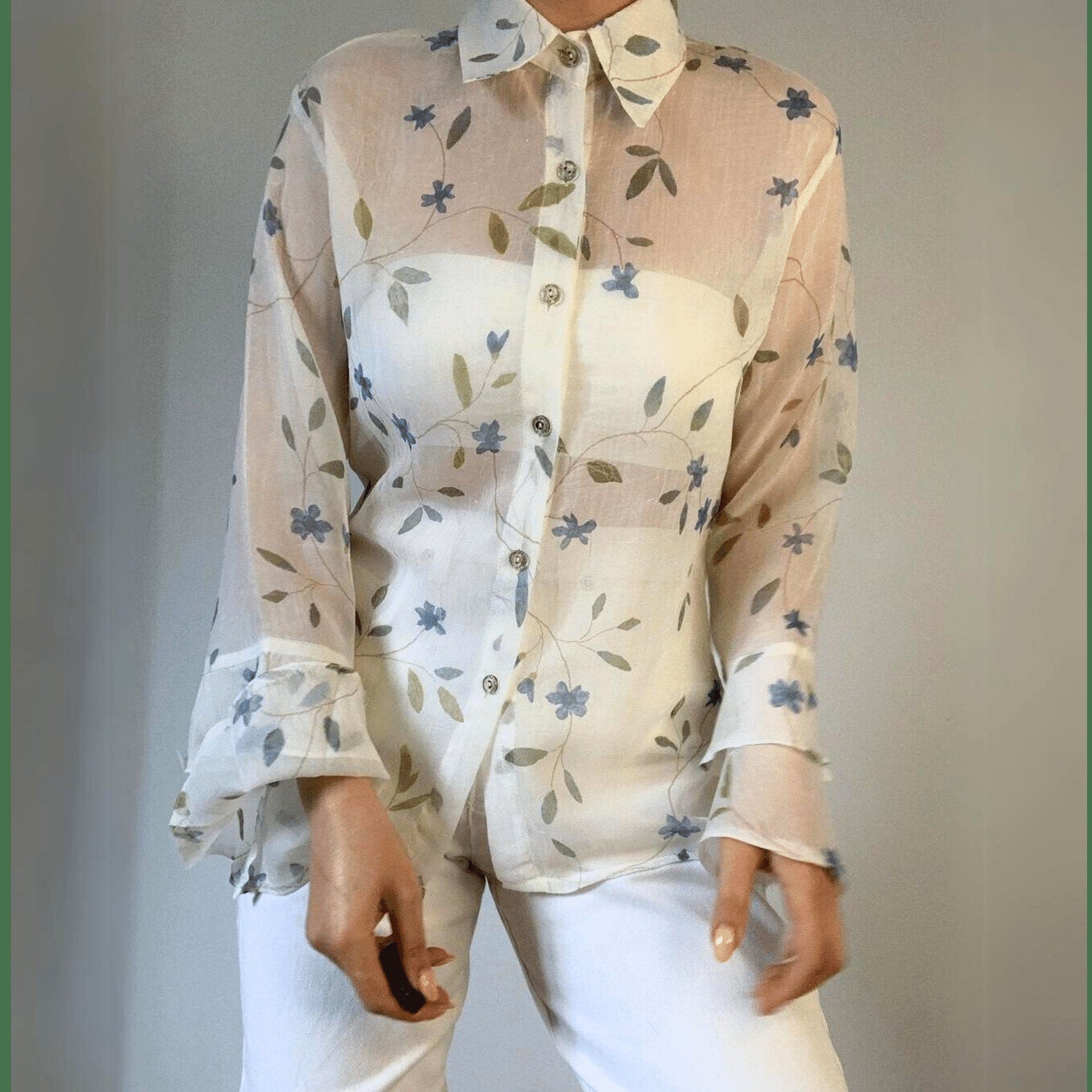Ruffled Sleeve Button-Up Blouse PDF Sewing Pattern