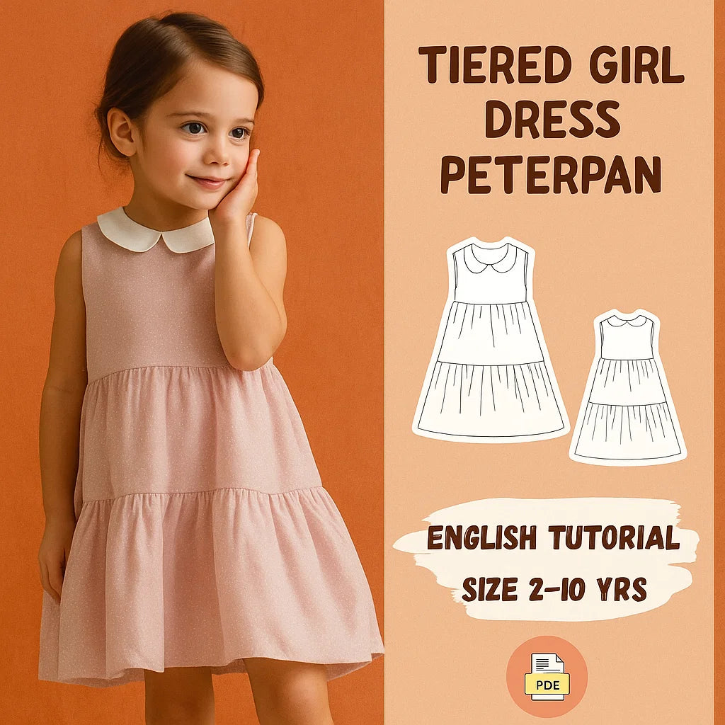 👗 Stitch up charm and comfort with this adorable tiered dress sewing pattern for girls! Designed with a classic Peter Pan collar and roomy pockets, it’s perfect for playful days or special occasions.